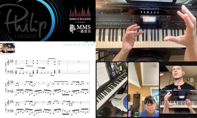 These days I recommend my students the online format. It's more flexible, I can teach you regardless of where you are based in the world as my online teaching setup features sheet music and live notation, excellent view of the piano keyboard and high-end streamed stereo sound and will provide you with an uploaded lesson recording after each lesson.