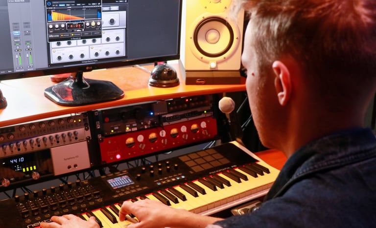 I teach weekly Artist Development (Music Production, Composition etc.) lessons hosted in person at SoulSonic's Studio inside of May's Music School (MMS) in Richmond, BC. By special request, I can also host these online.